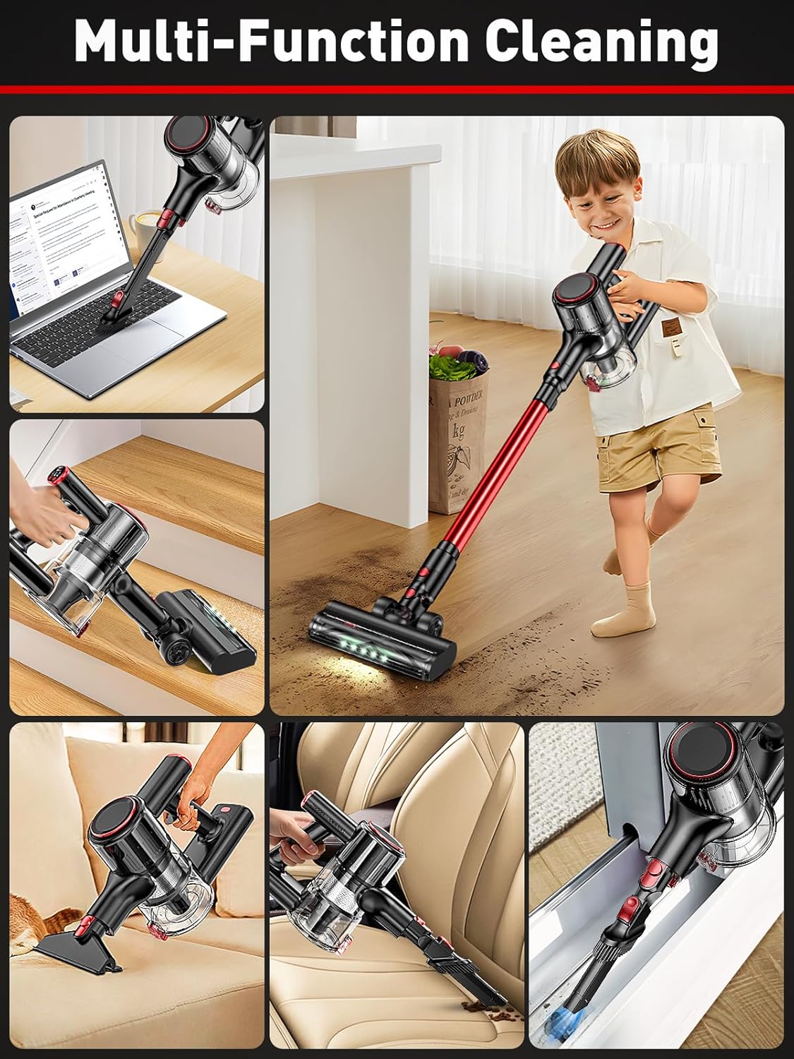 - [Lightweight & 8-in-1 Versatility] Weighing only 3.2 lbs, this stick vacuum converts to a handheld unit in seconds. vacuum cleaners for home comes with multiple accessory(sofa brush/ 2-in-1 cervice tool.Use the crevice tool for window frames, the dusting brush for lampshades, or tackle your car interior with precision. Includes wall mount for compact storage in apartments or dorms.