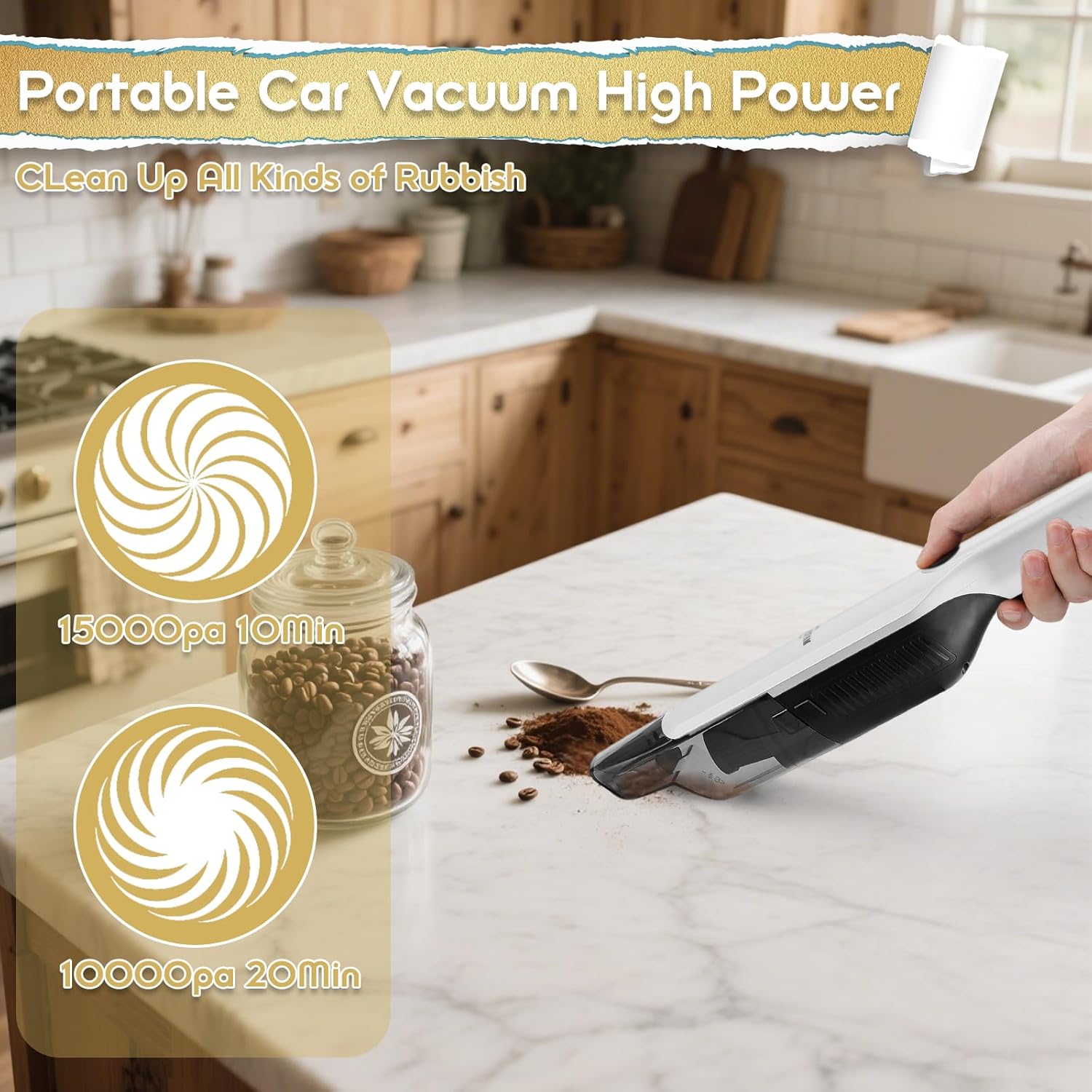 Handheld Vacuum Cordless,15KPA High Power Suction,USB Quick Charge,Car Vacuum Cleaner with Storage Dock,Lightweight Rechargeable Dust Buster with Crevice Tool Pet Brush Hand Vac for Home,White