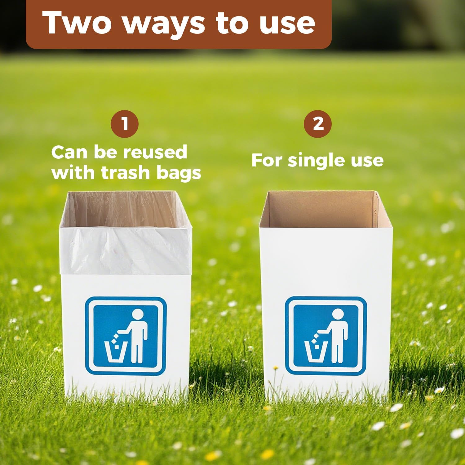 - 2-IN-1 USAGE: DISPOSABLE OR REUSABLE:Use once and recycle for ultimate convenience, or insert a trash bag for repeated use. Extremely versatile — great as a kitchen bin, recycling station, play mat, or party cleanup essential.