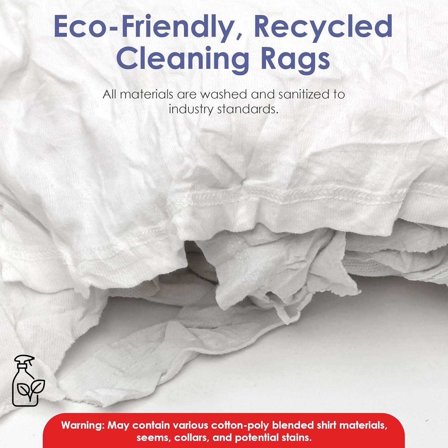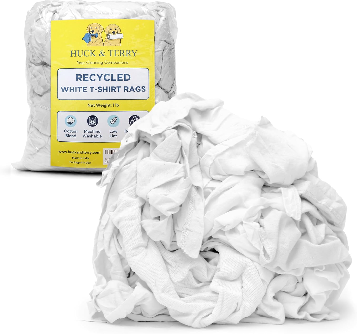 Huck & Terry White T-Shirt Bag of Rags (1 LB Bag), 100% Recycled Material, Cotton Blend Bar Mop, Reclaimed, Eco-Friendly Cloth, Cleaning & Painting Rags, Lint Free, Highly Absorbent