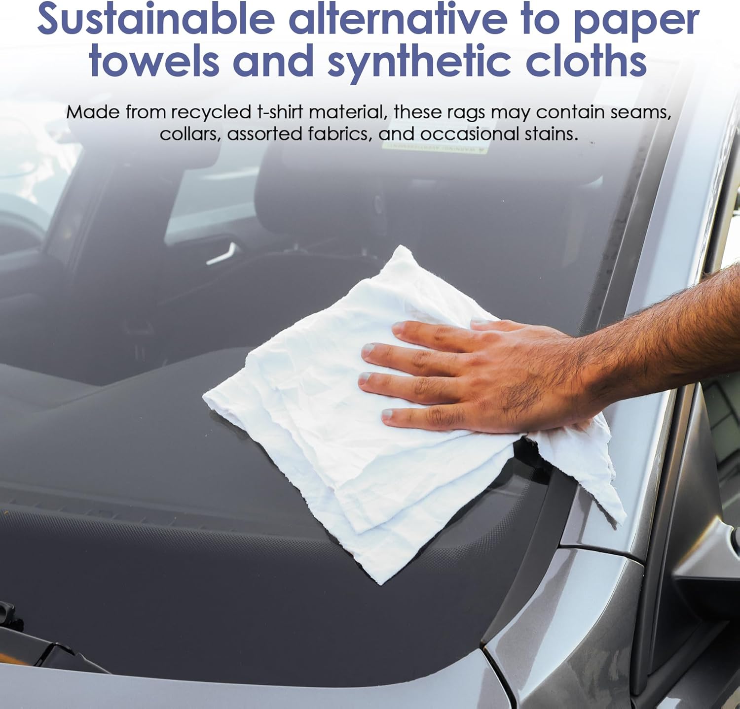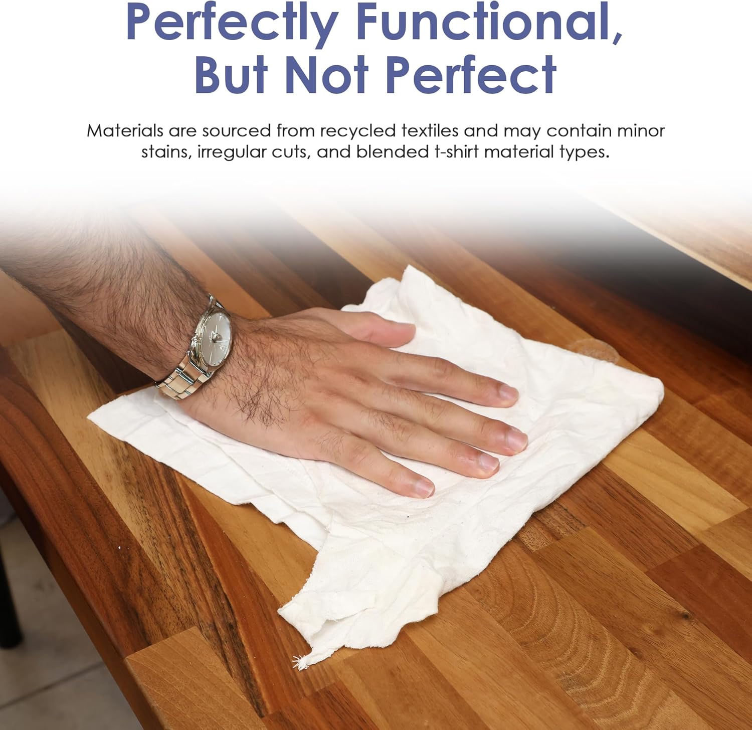 - Eco-Friendly Cotton Blend – Made from pre-consumer recycled cotton blend t-shirt material, these rags offer a sustainable, high-performance alternative to disposable paper towels and synthetic cloths.