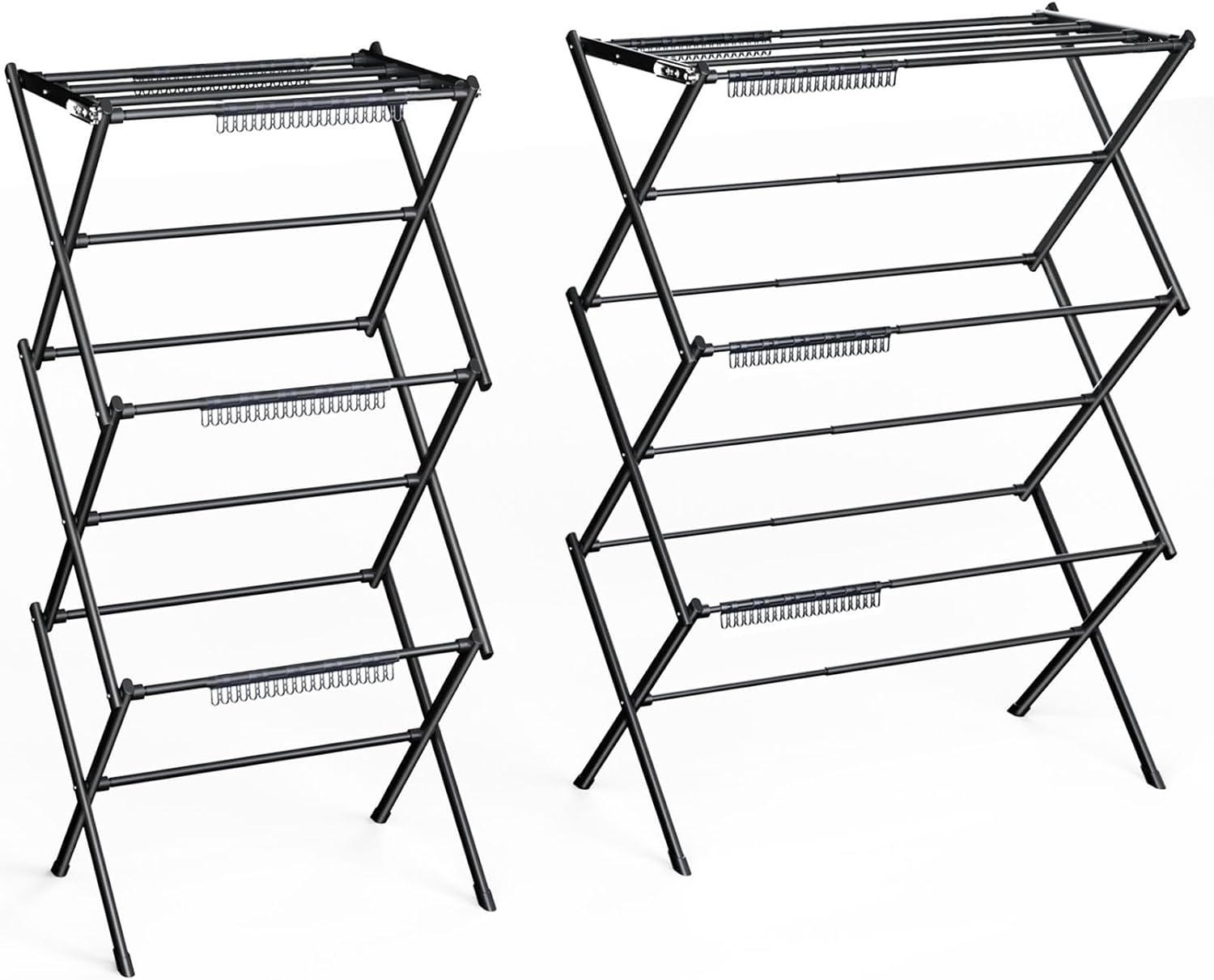 3 Tier Clothes Drying Rack,Foldable & Portable Clothing Drying Rack,Space-Saving Design, Indoor & Outdoor Laundry Rack for Drying Clothes,Metal Dryer Rack,Pure Black