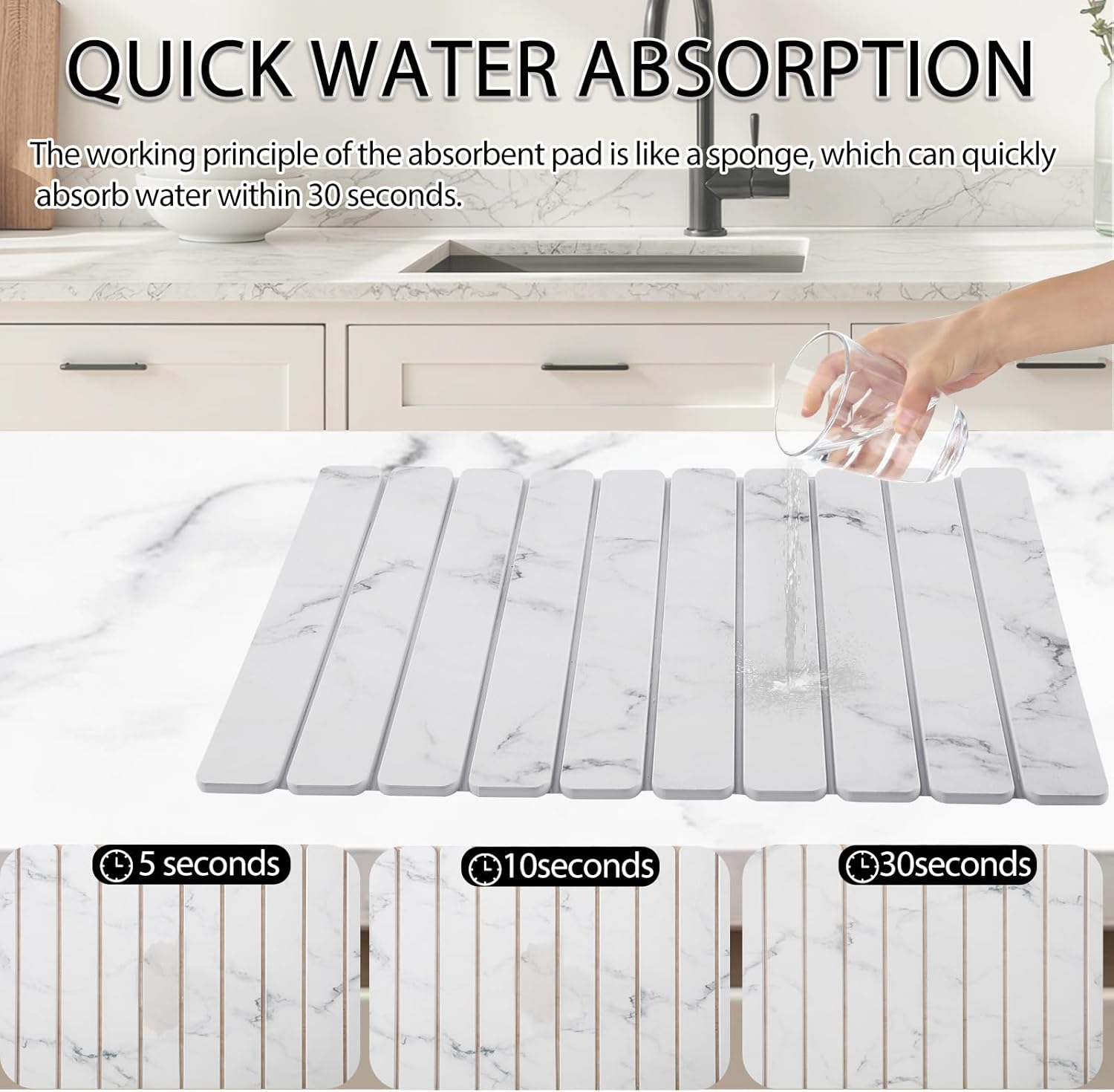 - Super-Absorbent Stone Drying Mat:Deep grooves instantly capture moisture 3X faster than rubber mats keeping kitchen counter dry and spot-free within minutes