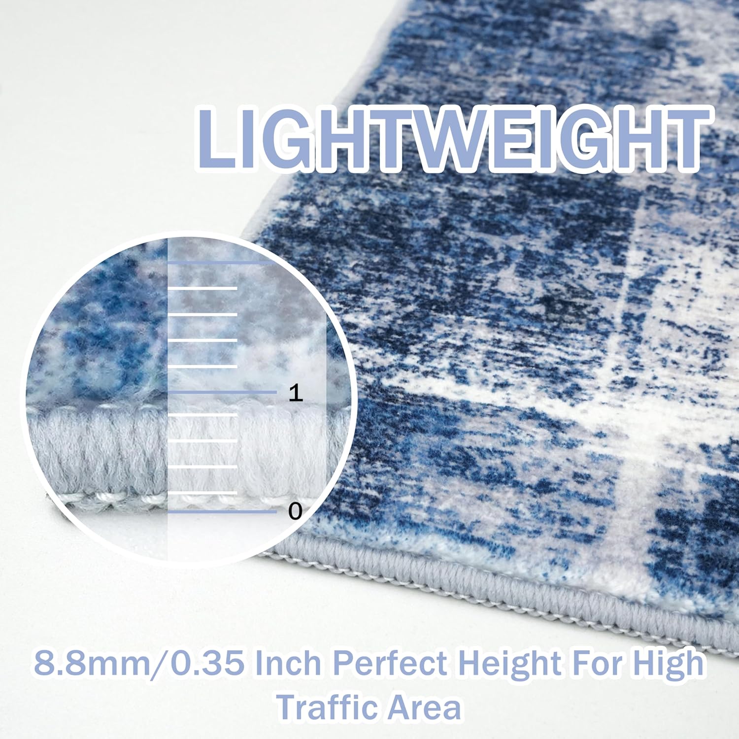 - Modern Abstract Printed Design: Transform your home with the modern abstract rug, a perfect blend of art and functionality. Printed with a modern abstract pattern, Its dynamic splashes of navy blue, gray and white hues add a vibrant touch to any room