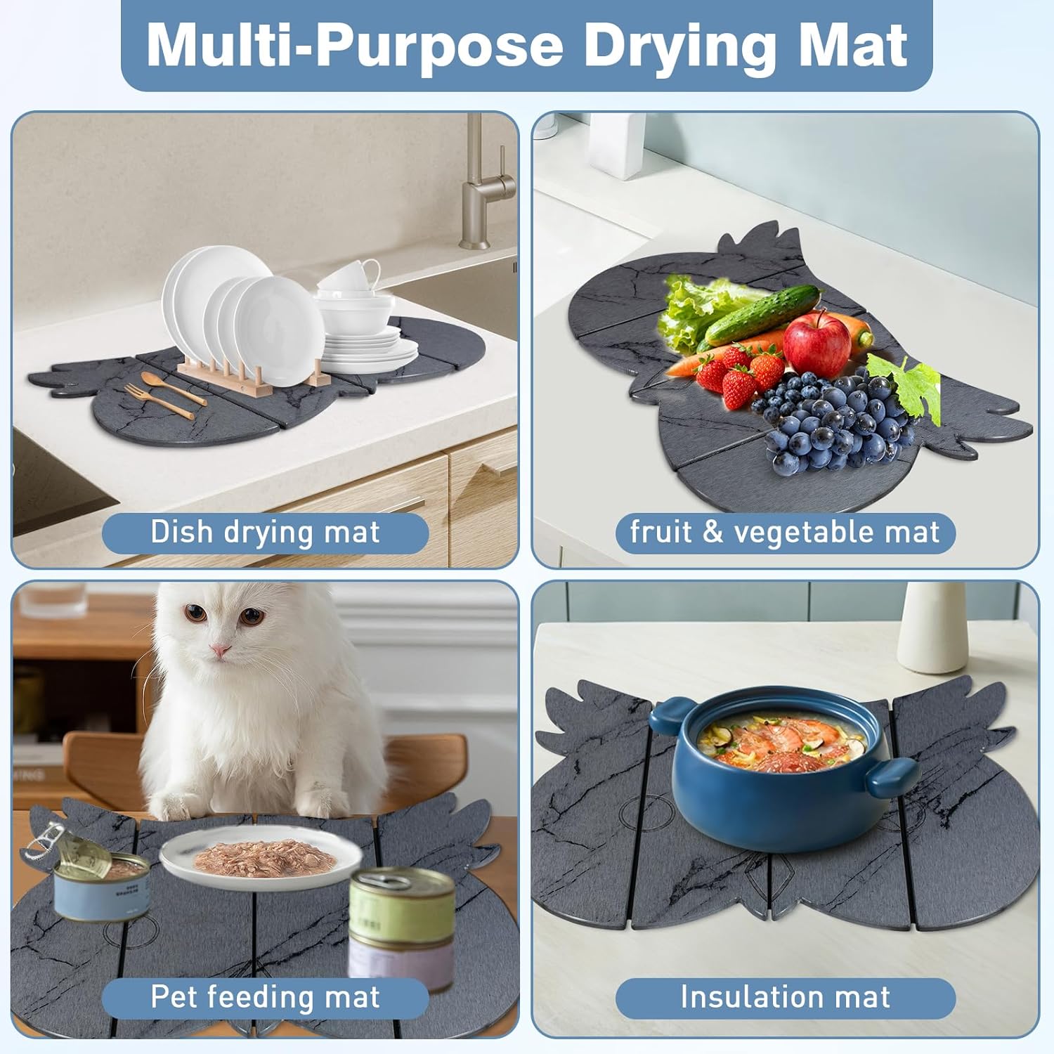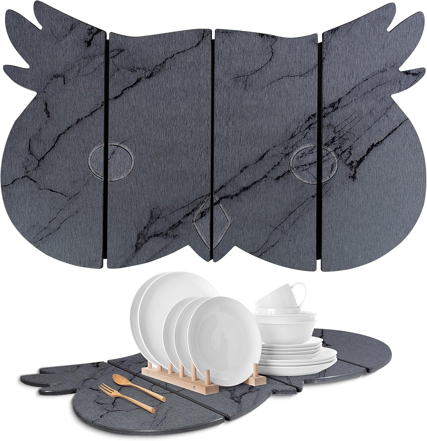 - 【Upgraded Owl Design with Elegant Marble Pattern】Stylish owl-shaped stone dish drying mat with a marble pattern adds a decorative and modern touch. Perfect upgrade for kitchens seeking both functionality and aesthetic appeal