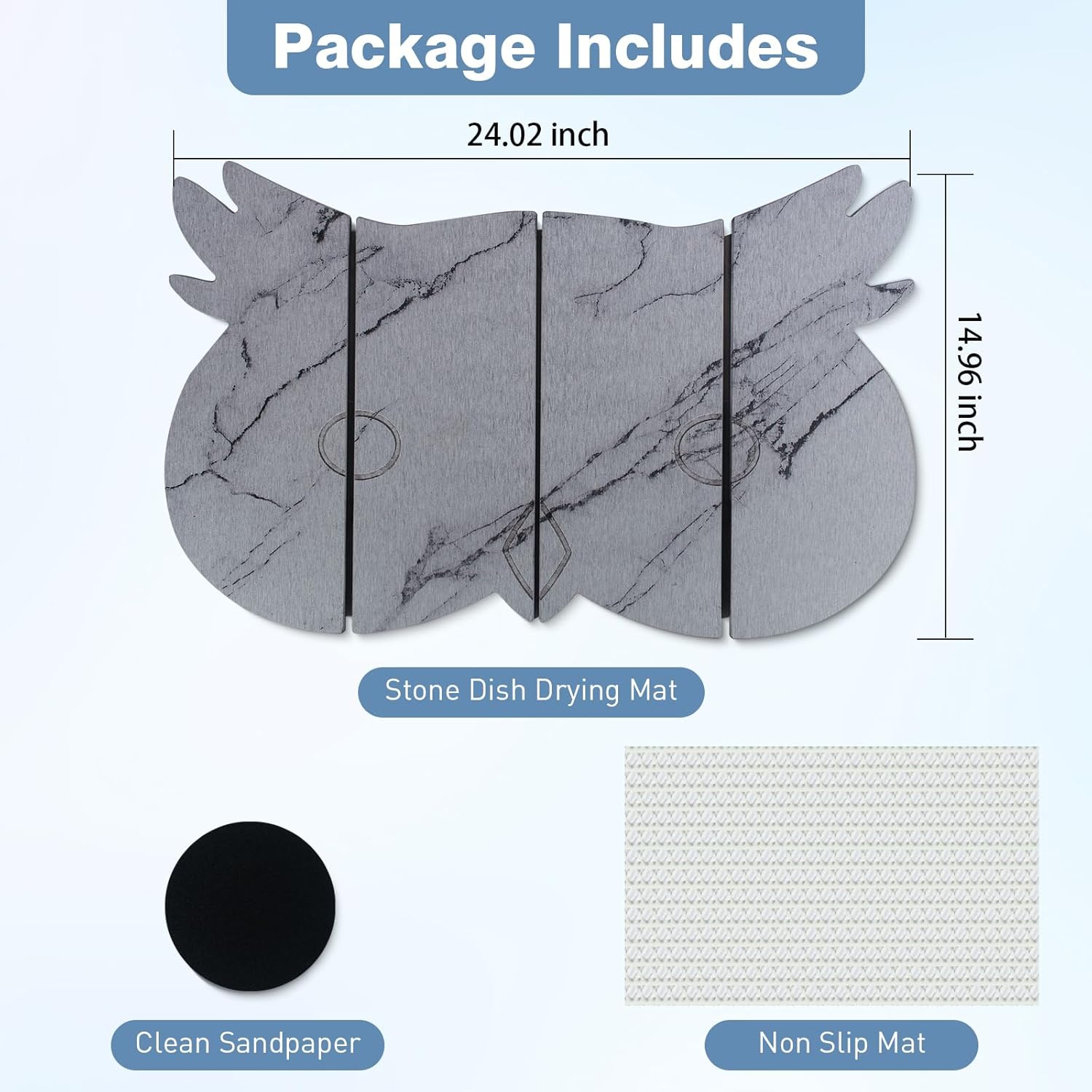 - 【Upgraded Owl Design with Elegant Marble Pattern】Stylish owl-shaped stone dish drying mat with a marble pattern adds a decorative and modern touch. Perfect upgrade for kitchens seeking both functionality and aesthetic appeal