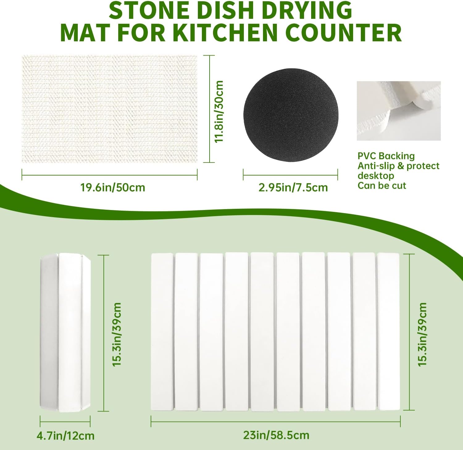 - Natural Diatomaceous Earth Material: Crafted from high-quality, food-grade diatomaceous earth, kitchen drying mat offers a sustainable and durable alternative to silicone or fabric dish pads for drying. It's safe and supports a healthy home environment
