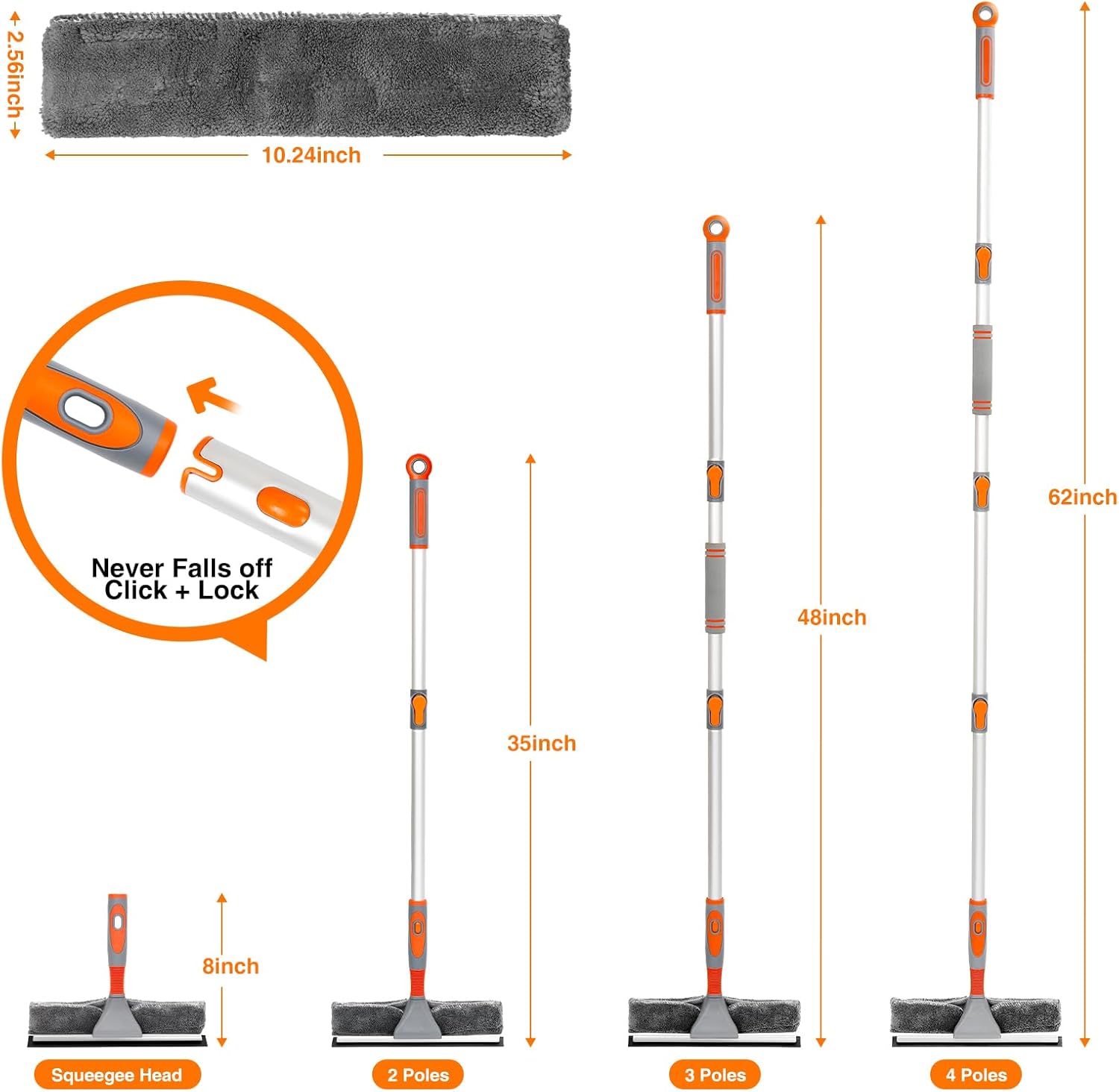 - 1️⃣ **Ultra-Lightweight Aluminum Construction** Aircraft-grade rust-resistant pole (62-inch) with ergonomic grip reduces arm fatigue by 40% during extended use, ideal for high windows and ceilings.