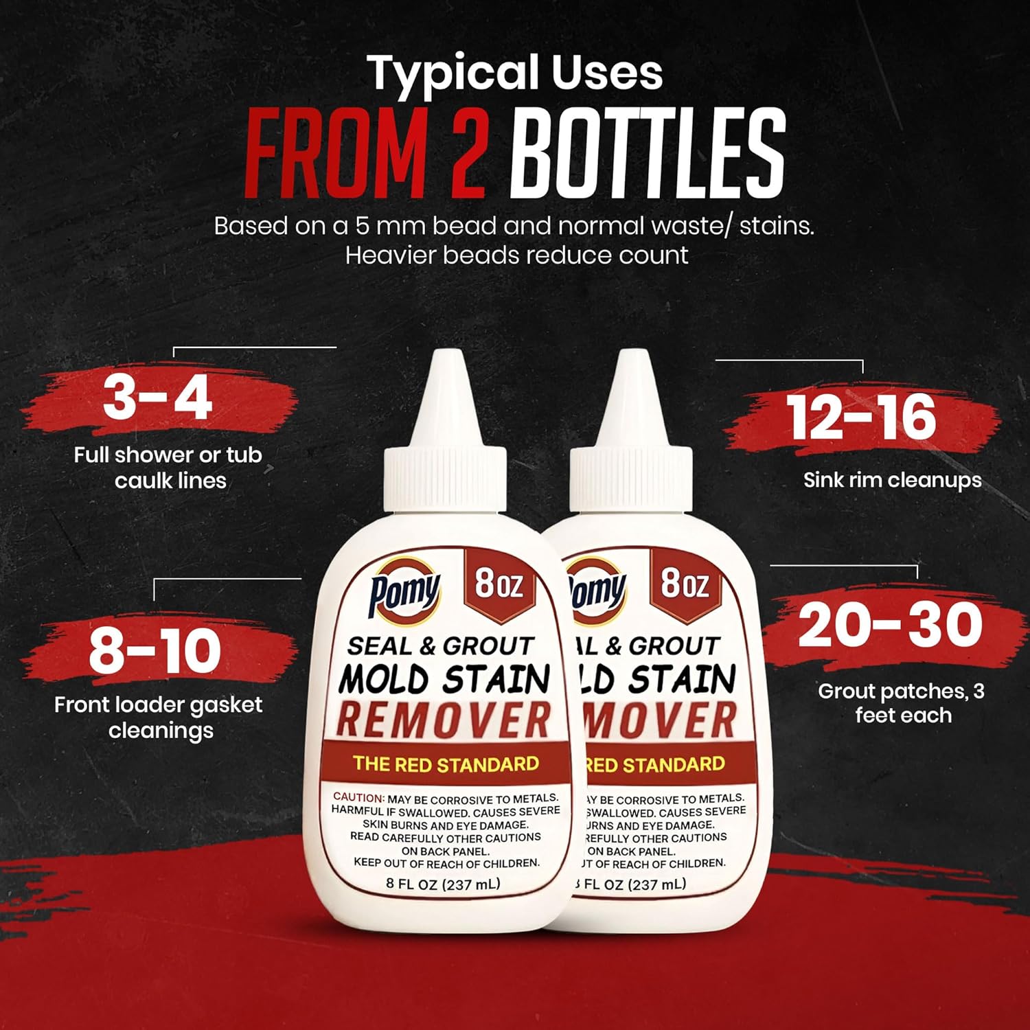 Pomy Professional Grade Mold Stain Remover Gel (2 Pack-16 oz Total) Thick No-Run Gel for Shower Caulk, Grout Lines, Washing Machine Gasket, Front Loader Door Seal, Tile and Bathroom Surfaces