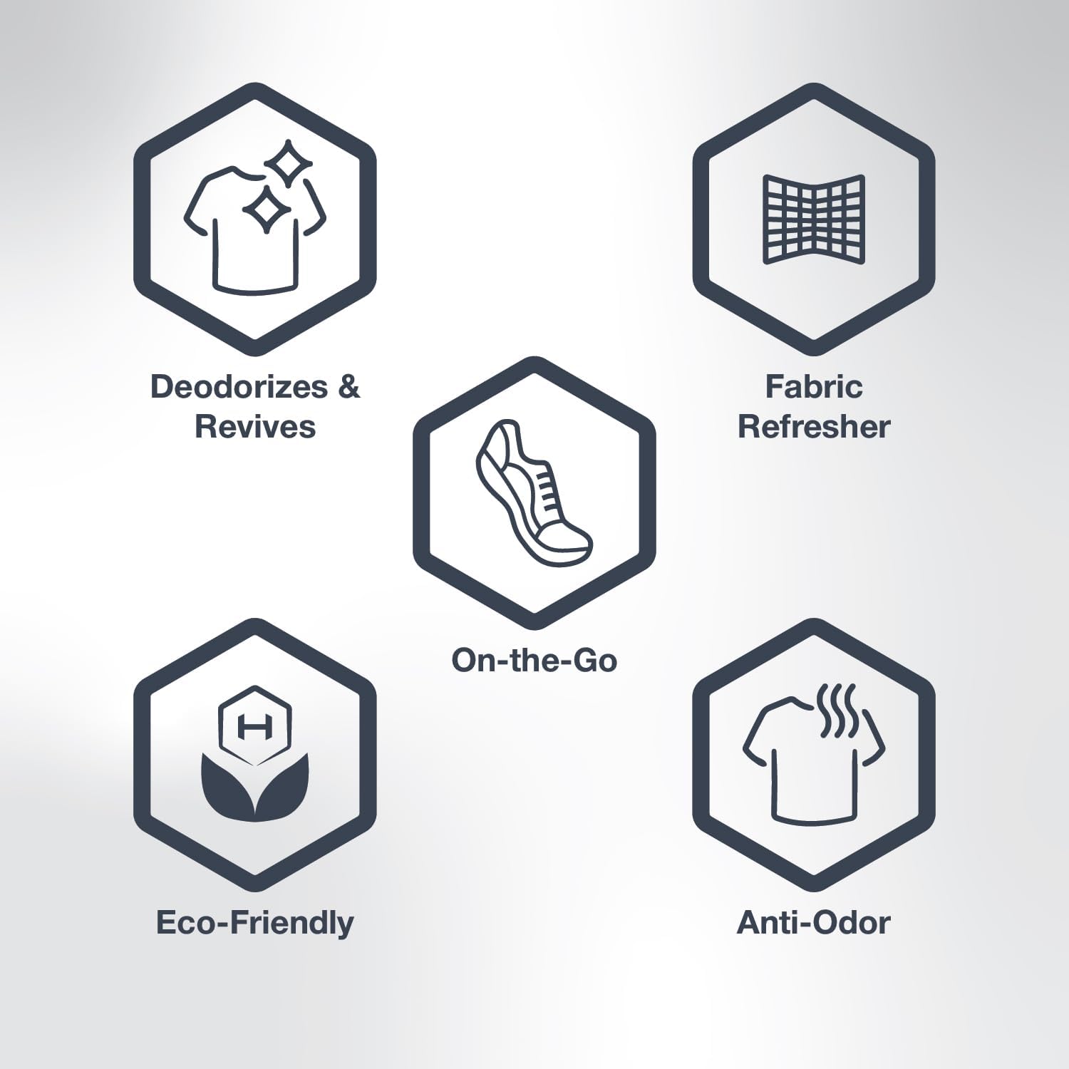 - Revive & Refresh All-in-One Spray β Fabric refresher odor eliminator spray made specifically to clean, remove odor, and deodorize fabrics, gear and anything else. Perfect for freshening fabrics and gear that canβt fit in a washing machine or between washings to keep fabrics smelling fresh and odor free. One bottle that does it all.