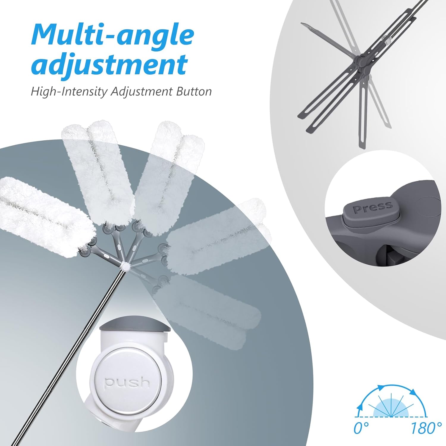 • Multi-Angle Adjustment: The dusting tool head can be adjusted to 5 positions for convenient cleaning of dust on various surfaces. The dual-head feather duster design offers a larger contact area and can be adjusted to different angles via a button, adapting to diverse cleaning needs for true versatility.