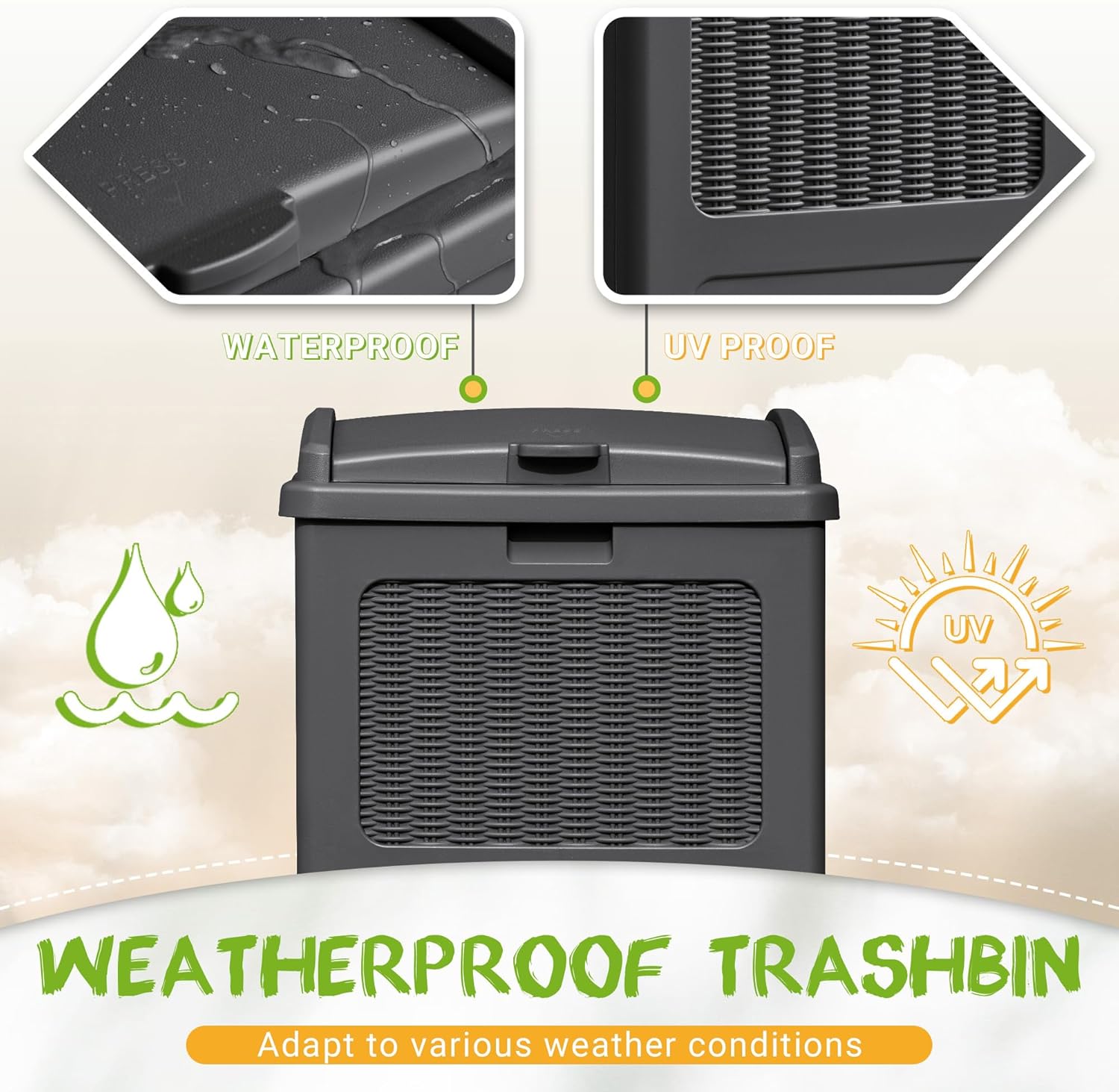 YESHOMY 2 Pack Outdoor Trash Can with Lid, Garbage Bins for Garden, Porch, Home and Kitchen, Gray