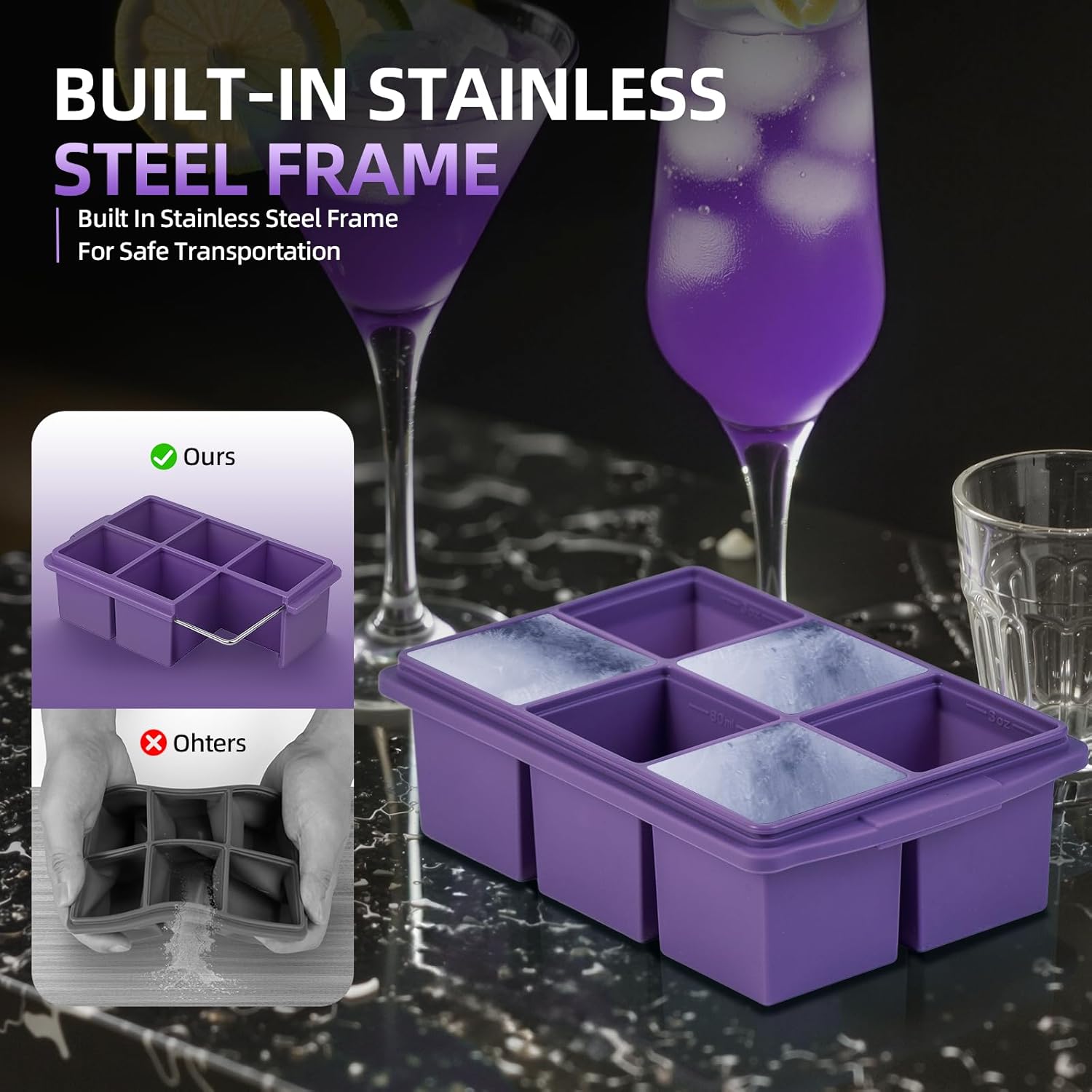 - 【Hassle-Free Ice Release】The ice cube tray thanks to its non-stick, flexible silicone and 6 individual compartments, perfectly formed 2-inch cubes release instantly with a simple press of the bottom – no cracking or wrestling required.
