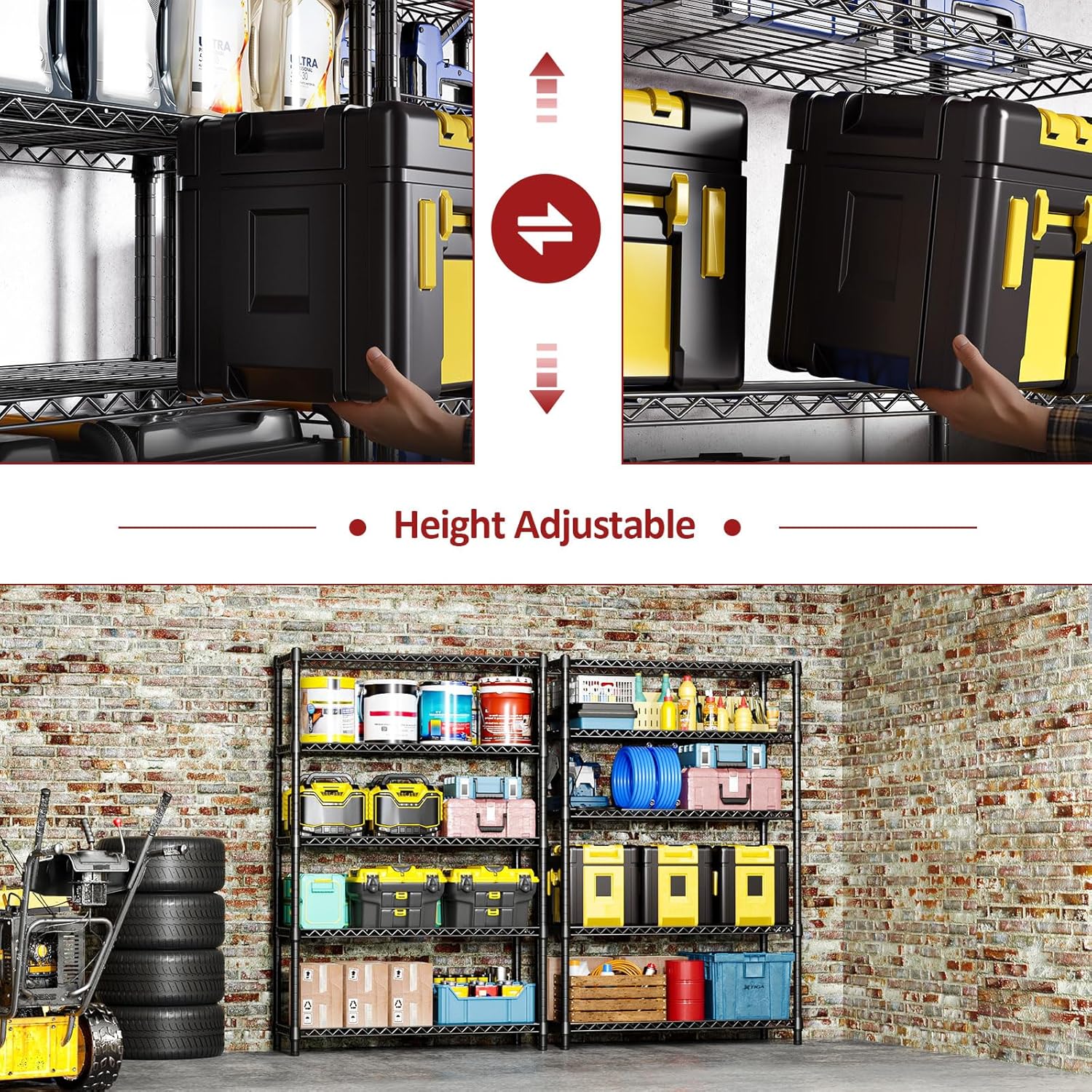 IZEUK 1750 LBS Garage Shelving Wide Storage Shelves Metal Shelves Heavy Duty Adjustable Utility Shelf Rack (Black, 5 Tier, 15.7" D x 45.3" W x 70.9" H)