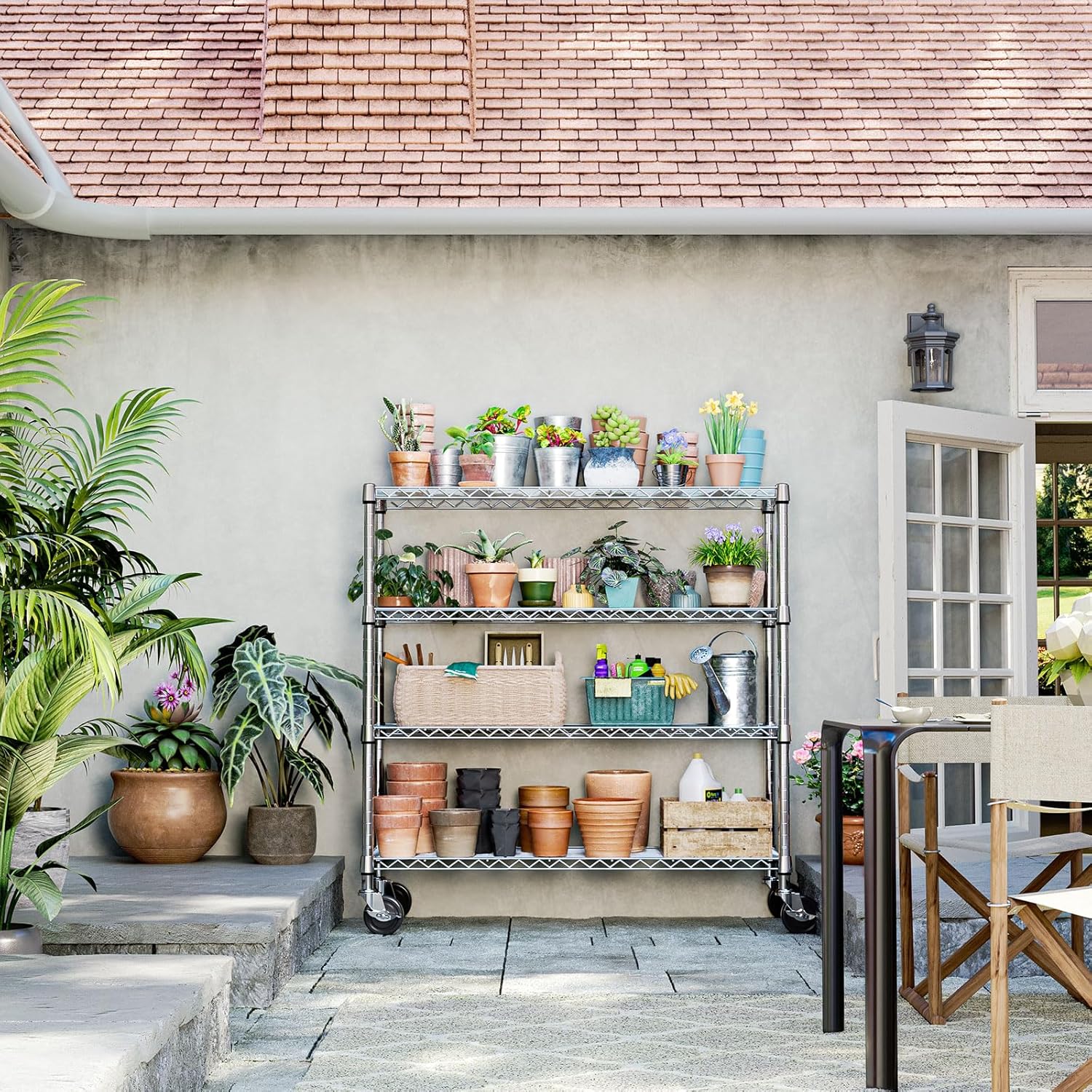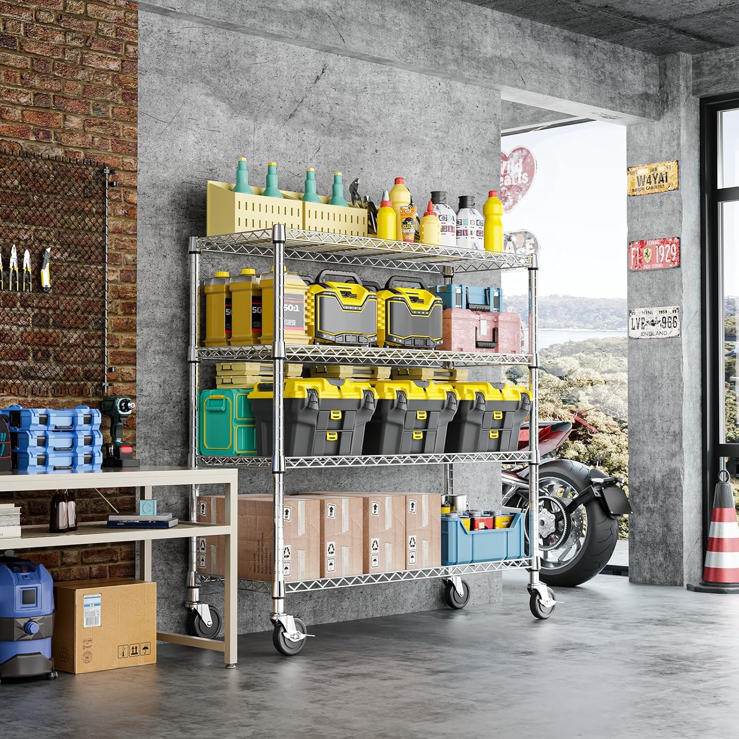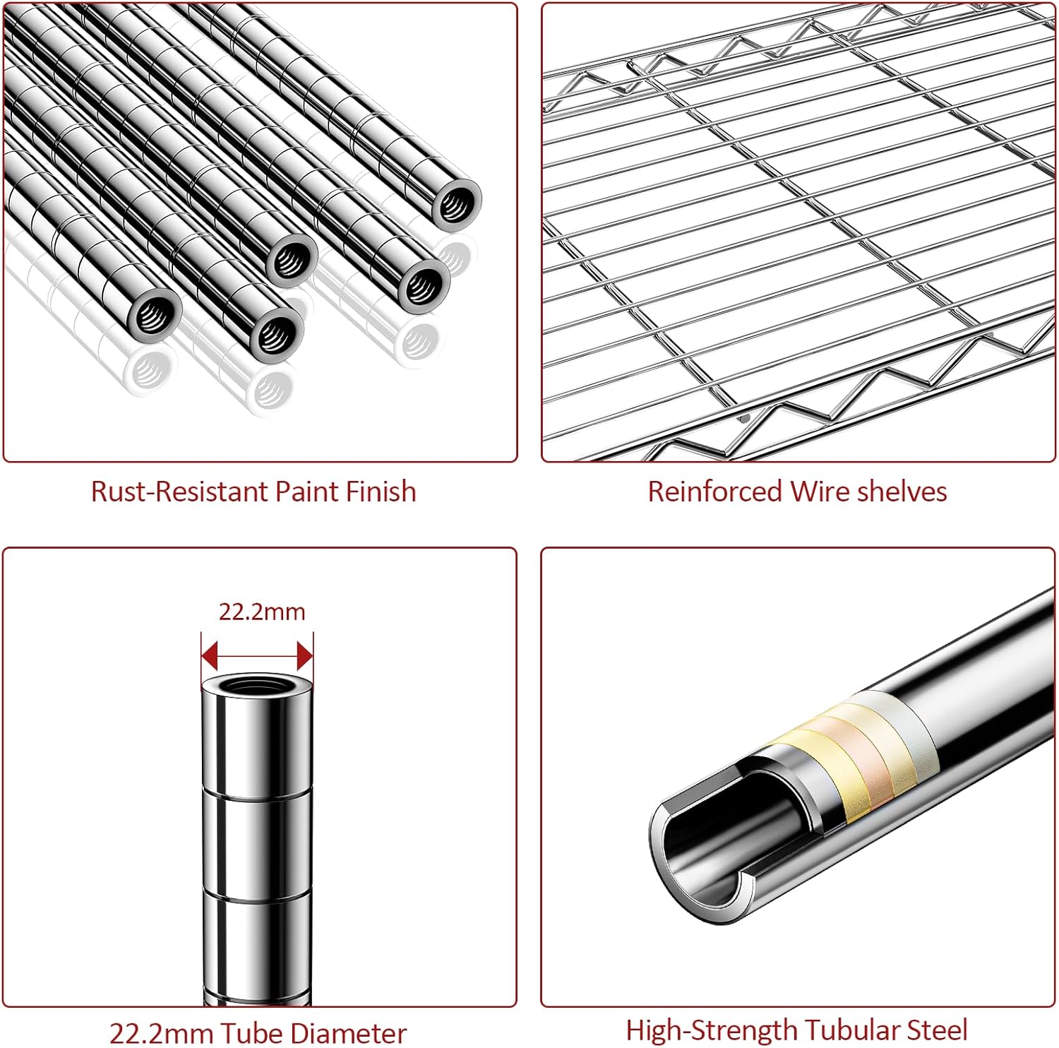 IZEUK 4-Tier Heavy Duty Metal Wire Shelving Unit, Adjustable Storage Rack Organizer for Garage, Kitchen, Office, Pantry, Warehouse (Chrome, 17.7" D x 47.2" W x 59.1" H)