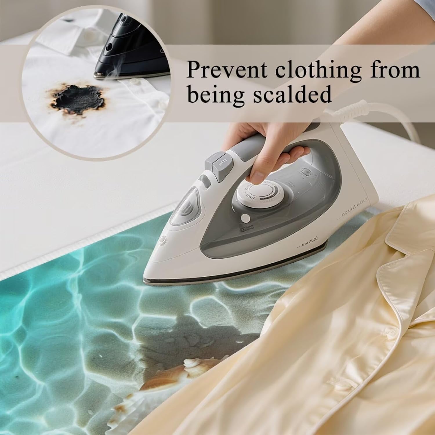 - 【Function】: Laminated with a soft fiber pad, this mat offers dual benefits: heat absorption to lock in warmth for faster ironing, and steam permeability to ensure creases release evenly, protecting tables, beds, or countertops from burns while reflecting heat back to your garment