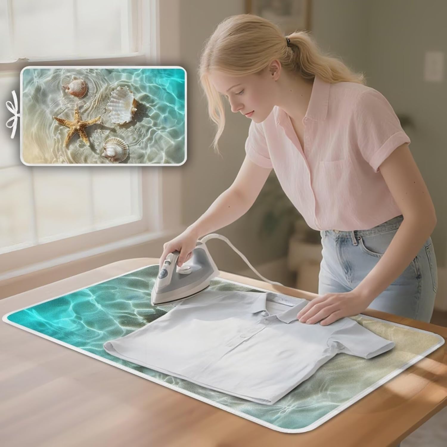 Ironing Mat Thickened Beach Starfish Ironing Blanket Travel Portable Ironing Pad Travel Isolate Heat Pad Cover for Washer Dryer Table Top Countertop 32 x 16 Inch