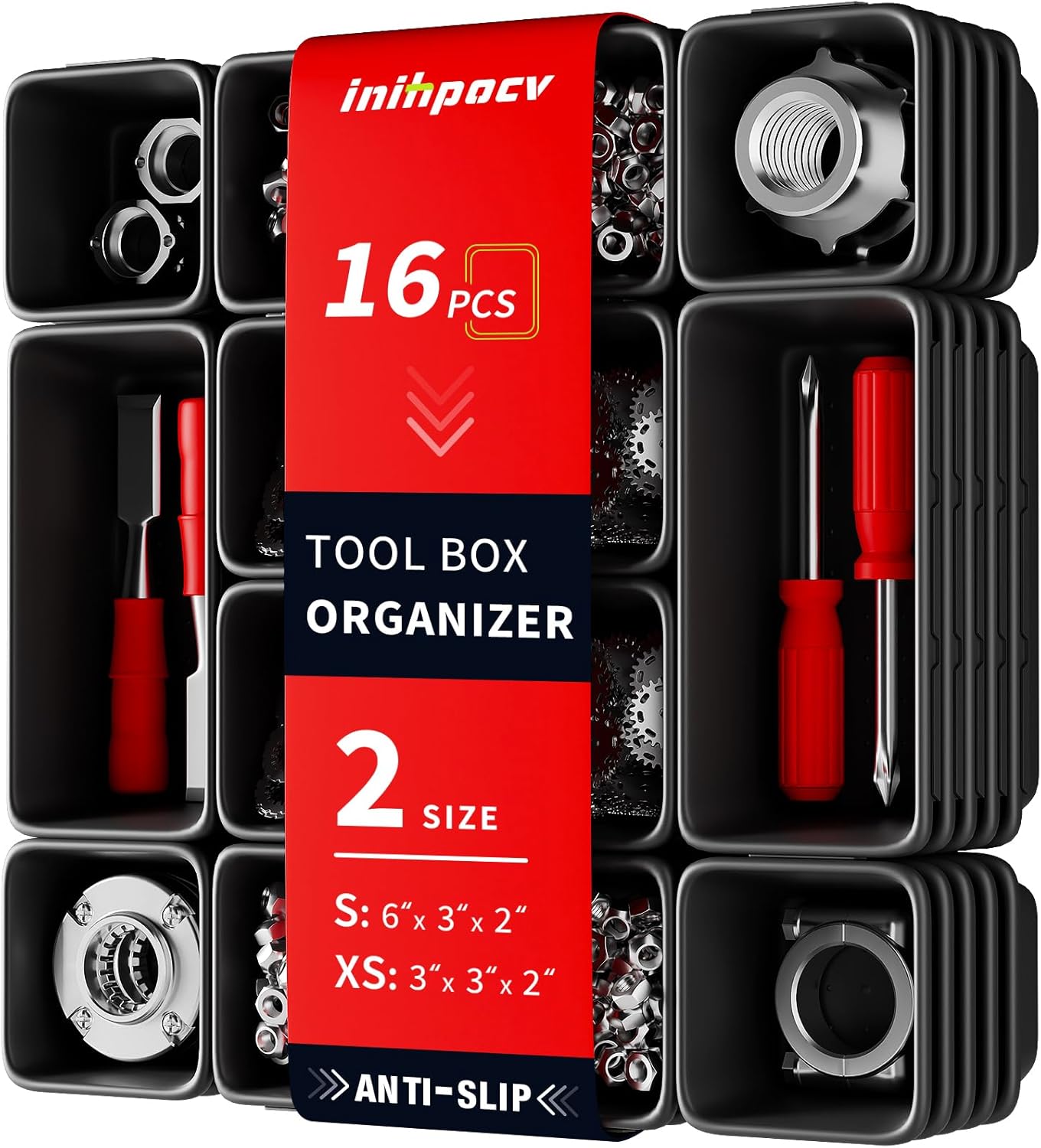 16 PCS Small Parts Tool Box Organizer Trays, tool box trays organizer for Toolbox Organization, Parts Trays and Screw Organizer Box for Tool Chest, Garage Drawers and Workbench
