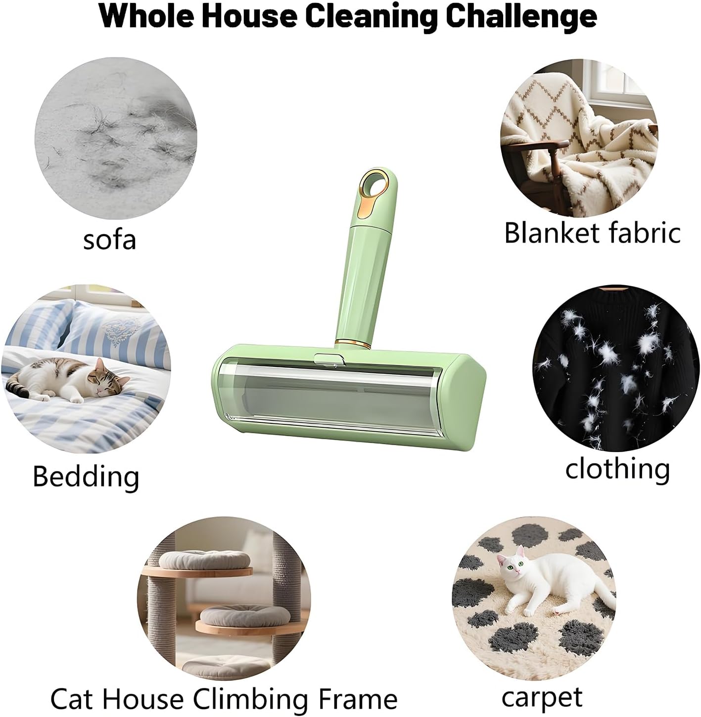 - Full-scene cleaning coverage: Suitable for sofas, pillows, carpets, car seats and other scenes. Whether it is dog hair, cat hair or fabric hair, it can be deeply grasped by rolling back and forth, allowing pet families to say goodbye to "hair troubles".