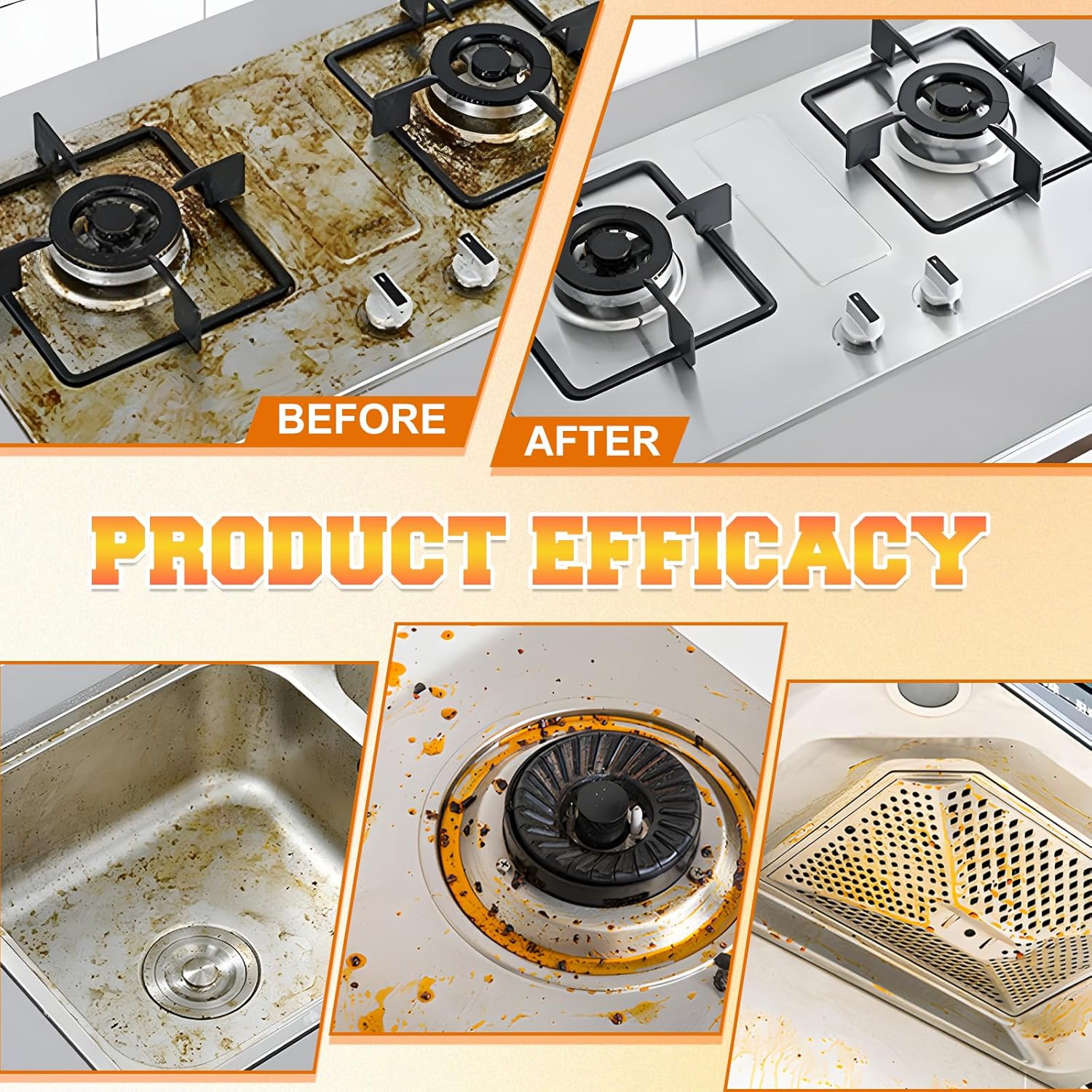 - Heavy-Duty Grease Removal: Effectively breaks down stubborn grease,oil,and baked-on food with ease. Ideal for stovetops,ovens,range hoods,and grills,cleans thoroughly without the need for harsh scrubbing or abrasive cleaning tools