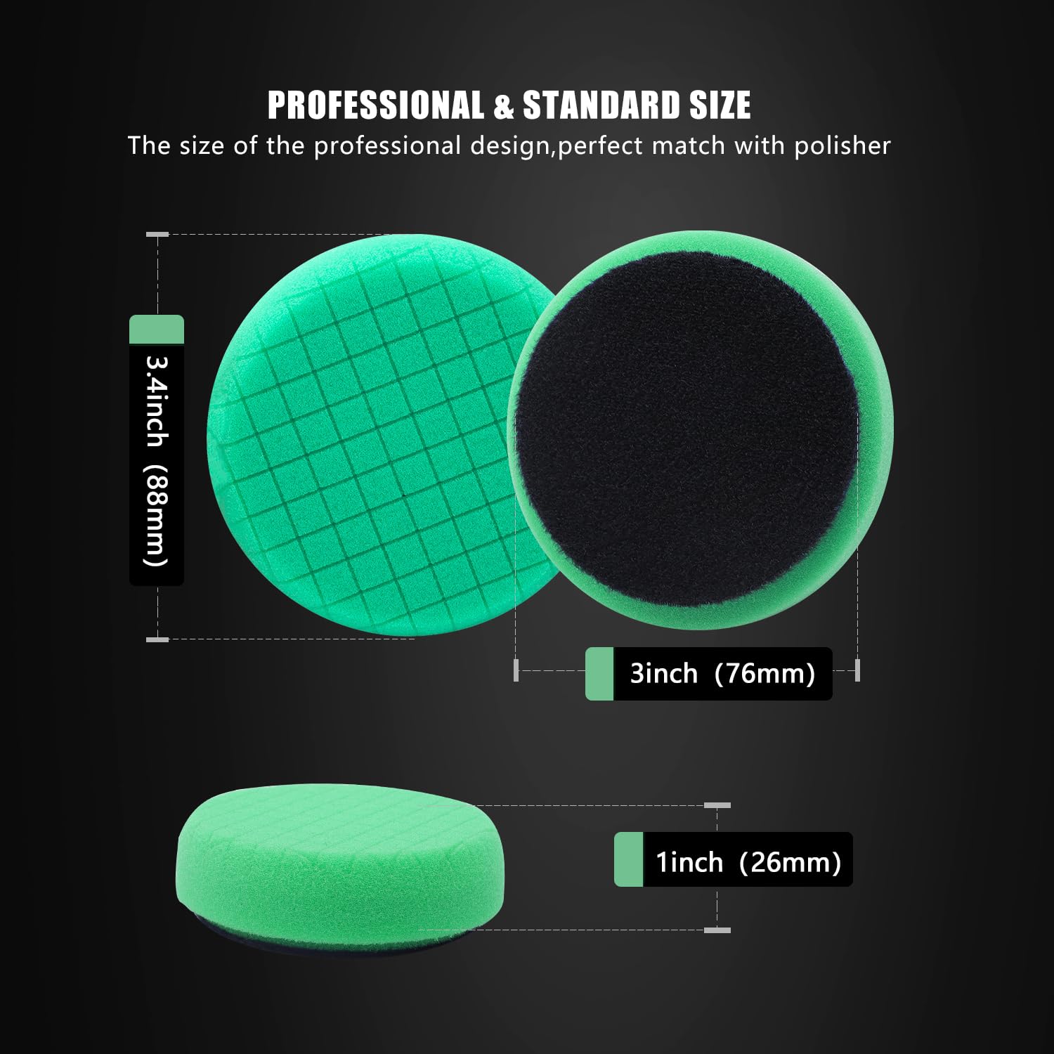 Green Heavy Cut Pad, Buffing Polishing Pads, SPTA 1Pc 3.5 Inch Face for 3 Inch 80mm Backing Plate Compound Buffing Sponge Pads for Car Buffer Polisher Compounding, Polishing and Waxing -FPTSS3G