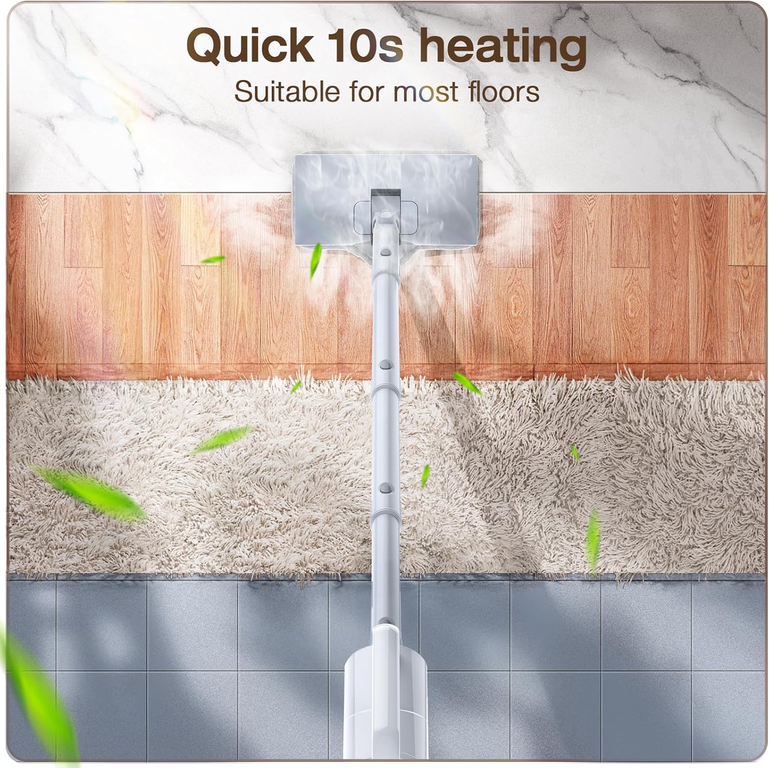- Powerful Steam Mop: ScrubWiz Steam cleaner is your reliable assistant for home cleaning; Utilizing high-pressure steam effectively, heating up in just 10 seconds, reaching temperatures of up to 248°F to swiftly convert water into steam, equipped with 2 adjustable steam modes, effortlessly eliminating dirt, grease, and tough stains on various indoor and outdoor surfaces