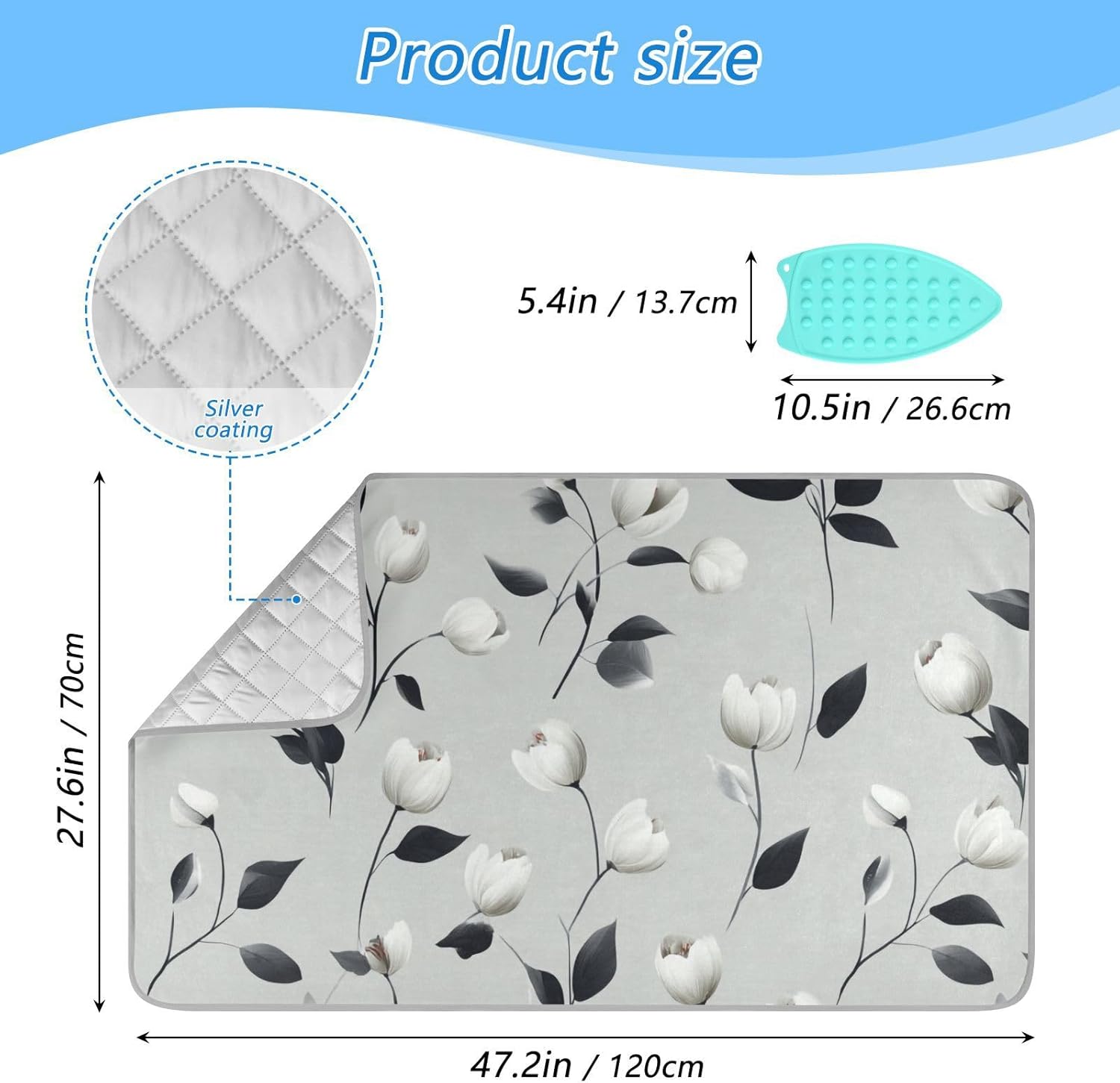 Ironing Mat Portable Ironing Pad Ironing Blanket for Table Top Heat Resistance Double-Side Using Travel Large 47.2 x 27.6 Inch Foldable Lightweight Light Grey Tulips