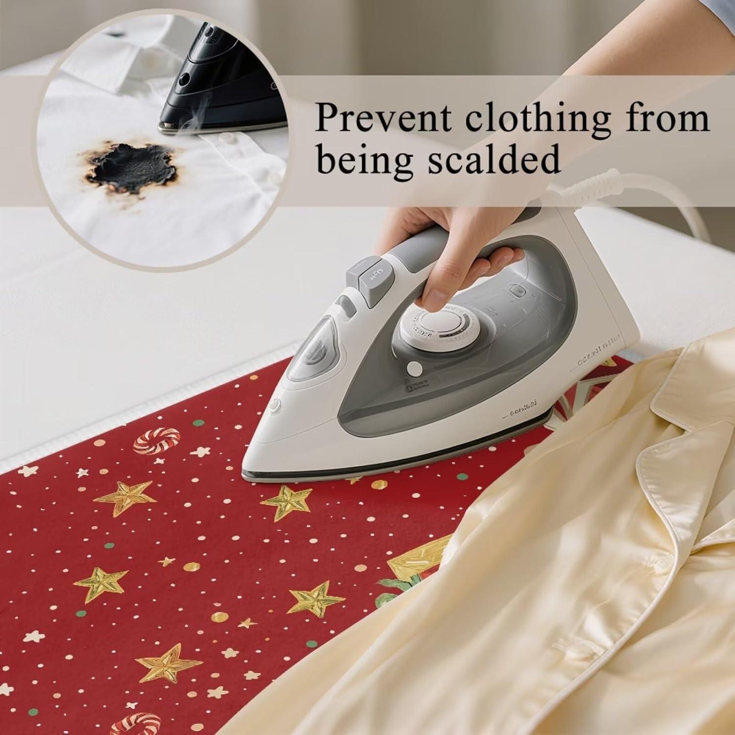 - 【Function】: Laminated with a soft fiber pad, this mat offers dual benefits: heat absorption to lock in warmth for faster ironing, and steam permeability to ensure creases release evenly, protecting tables, beds, or countertops from burns while reflecting heat back to your garment