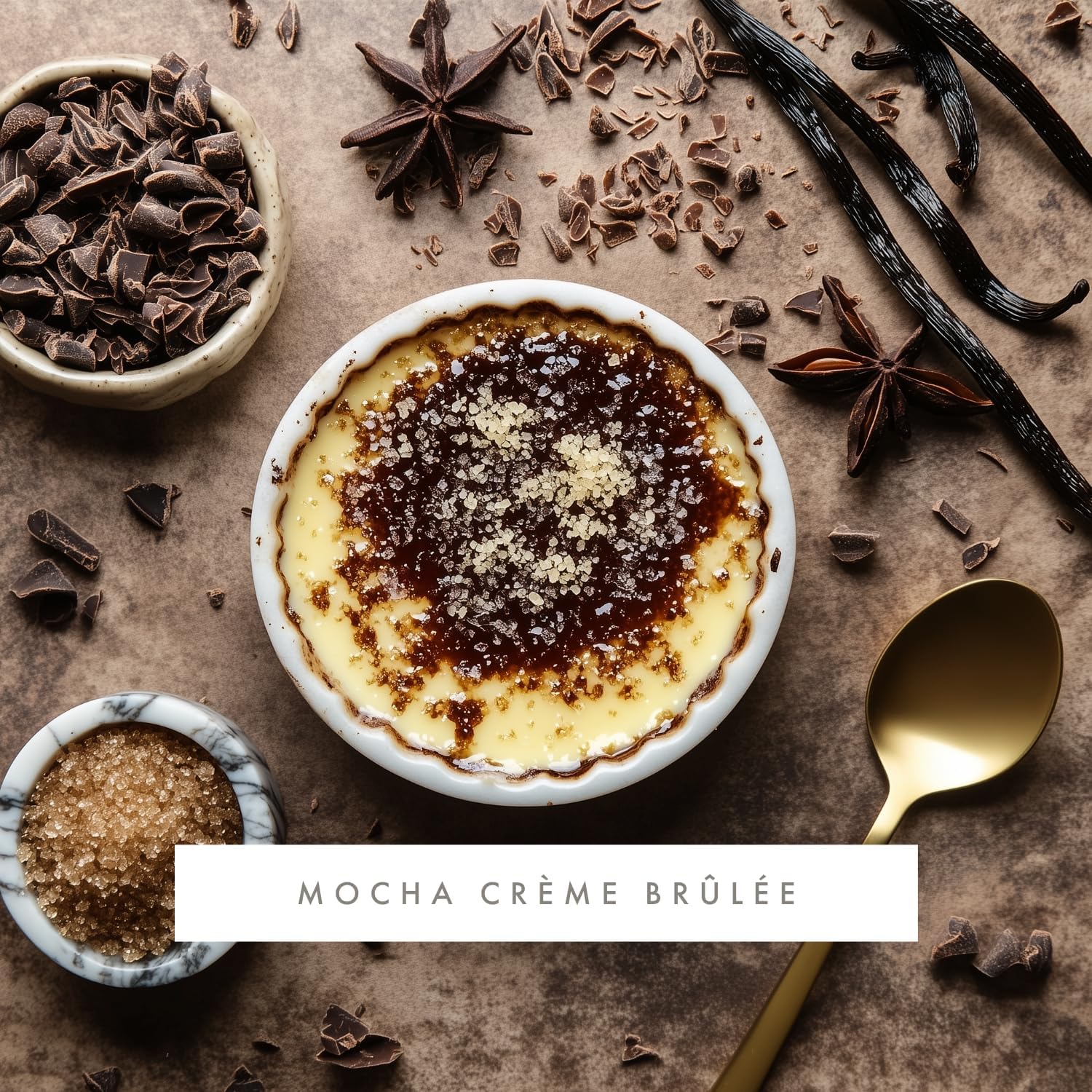 - Savory & Gourmand Edible Scent – A medium-strength fragrance that layers semi-sweet chocolate, caramelized brown sugar, and sweet cream over rich coffee, vanilla, and warm musk. Decadent top notes of chocolate chips, brown sugar, and warm milk blend into a heart of cookie dough, cocoa, and coffee nuances, finishing with a smooth base of vanilla and musk. From the Edible–Vanilla family, it smells like cracking into a Mocha Crème Brûlée on a special night out.