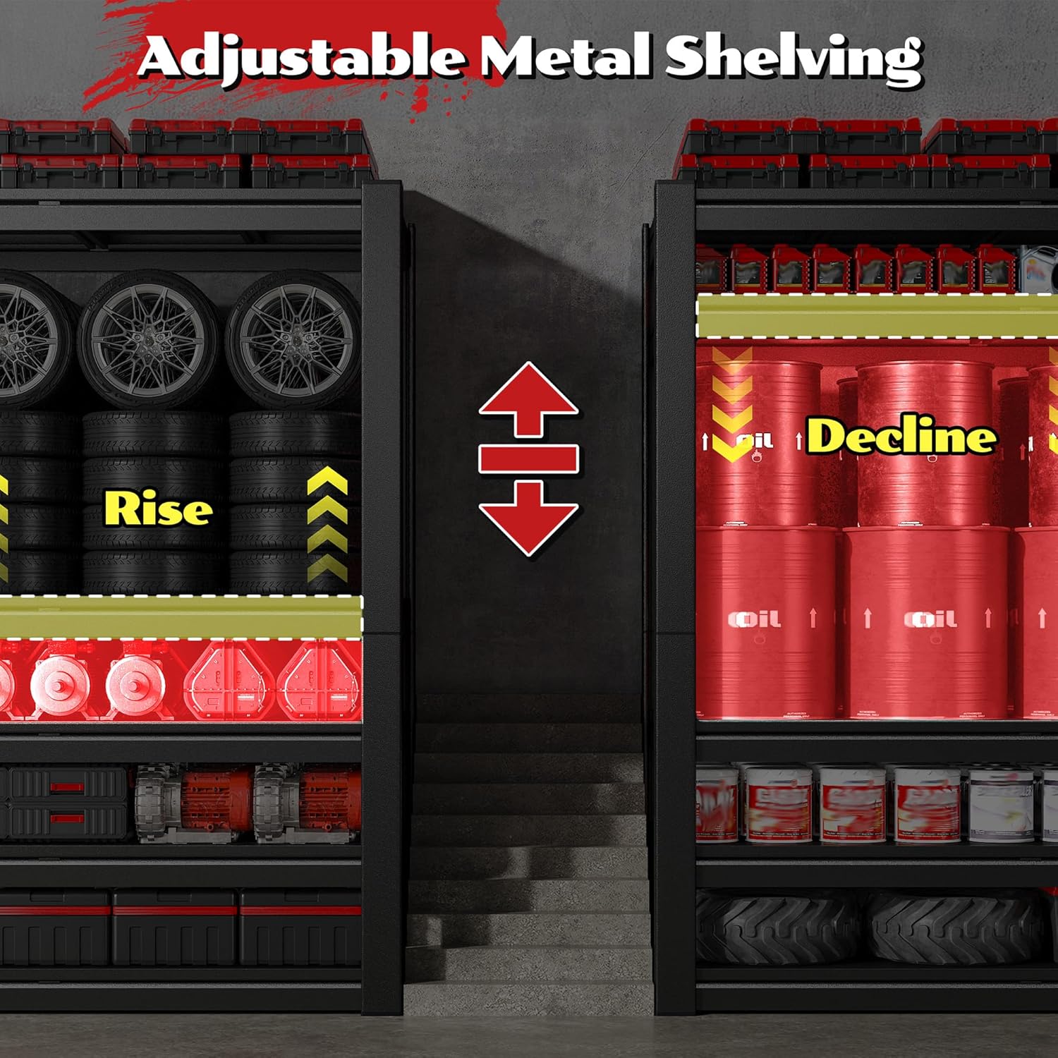- 【Freely adjustable metal storage shelves】The floor height can be adjusted by changing the installation height of the steel plate to adapt to the height of different items. It also supports splitting and reorganizing into two independent units to meet the diverse space requirements of garages, basements and warehouses
