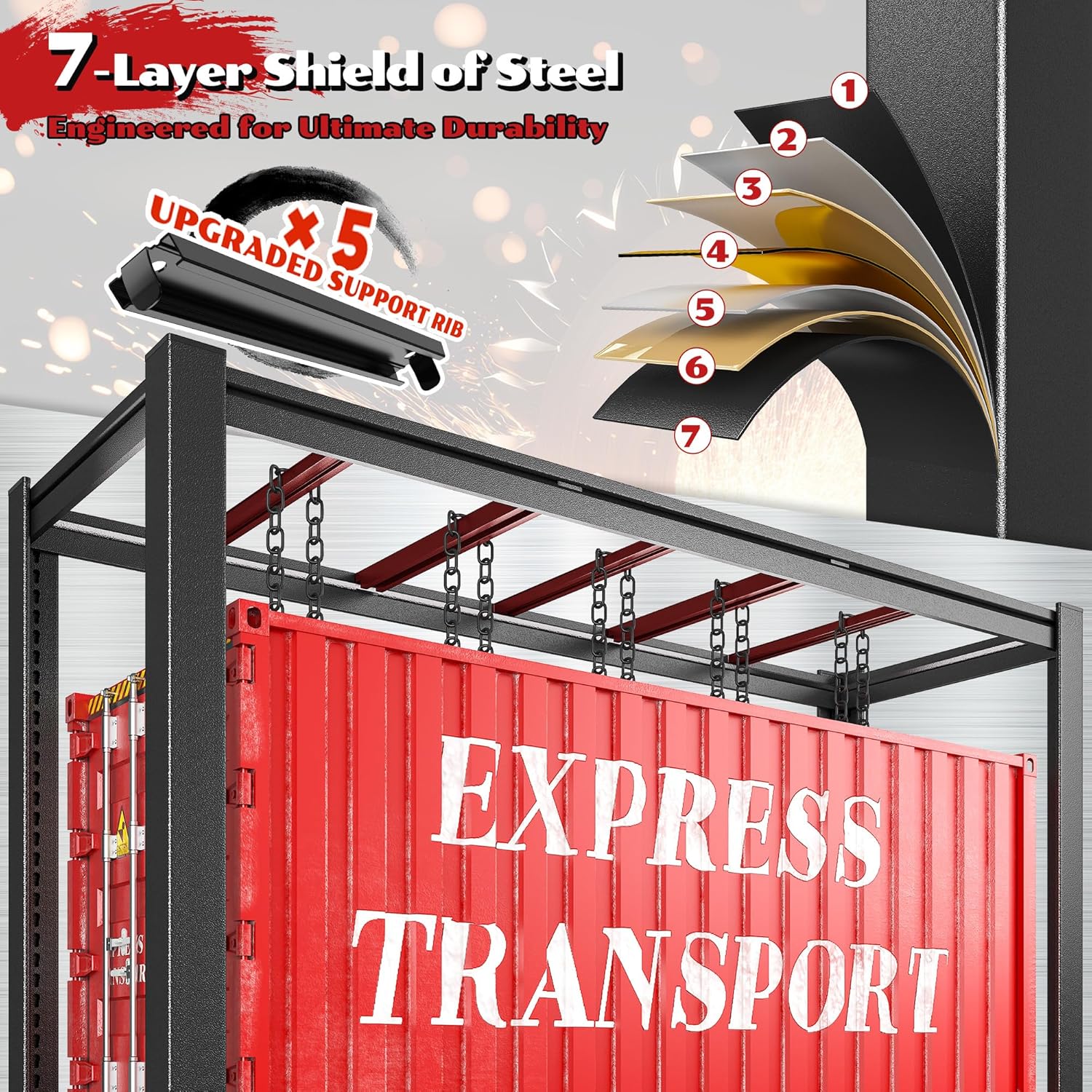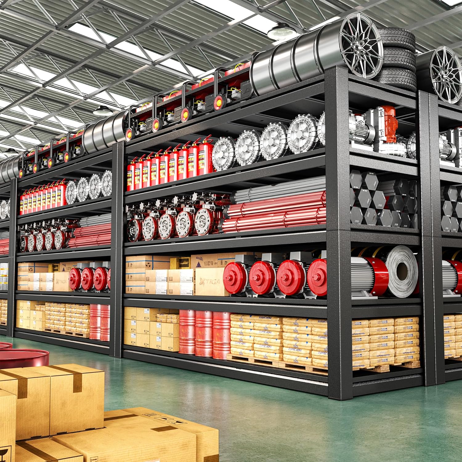 - 【3125LBS Industrial-Grade Load Capacity】The 3125LBS super heavy-duty shelf can bear a load of 625LBS per layer, each shelf features a 5-rib support structure. Sturdy and professional for carrying heavy objects, suitable for storage needs in garages, factories, warehouses, basements, outdoors and supermarkets