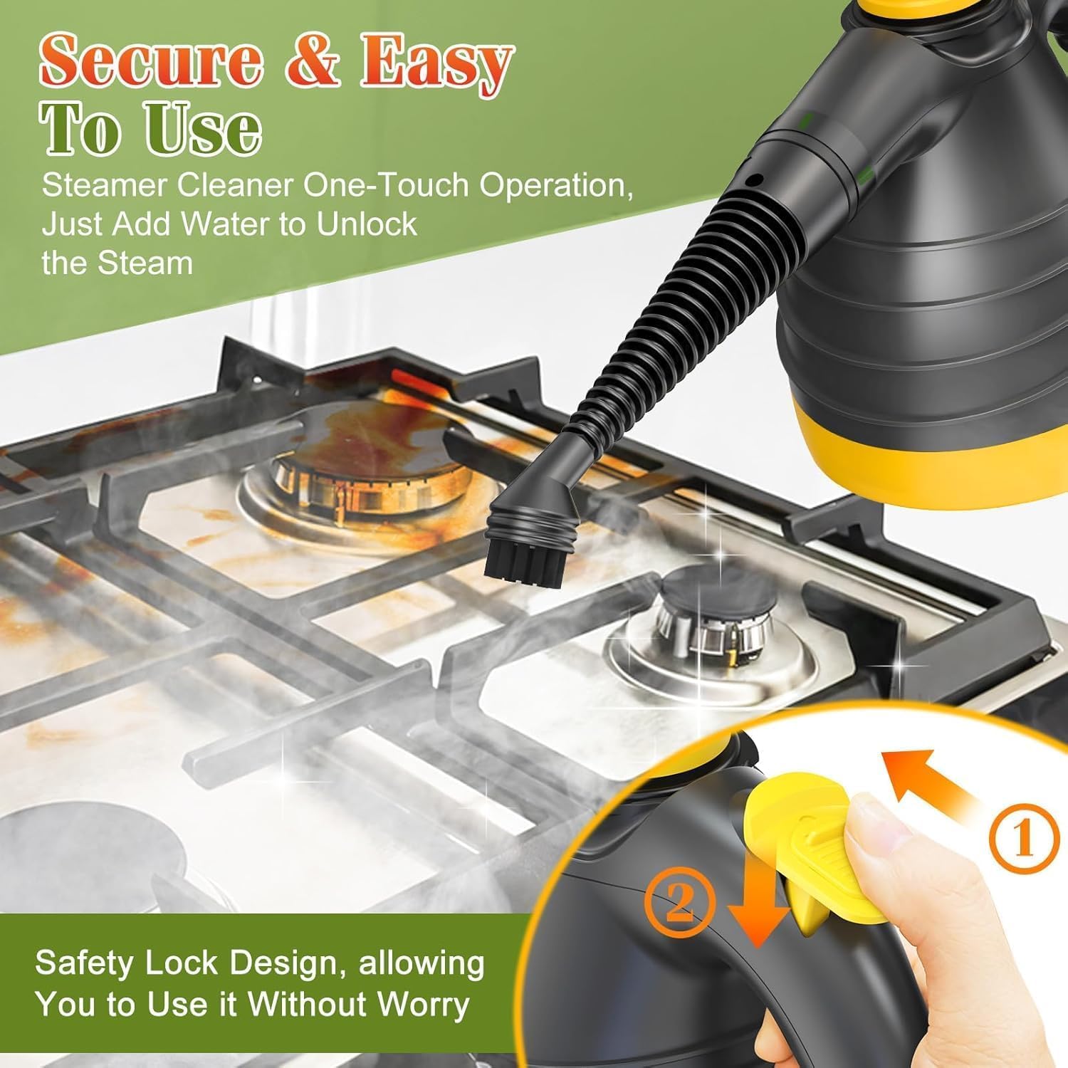 Handheld Pressurized Steam Cleaner, 1050W Multi-Surface Steamer for Cleaning, 9 Accessories Multi-Purpose Steamer for Home Use, Chemical-Free Natural Steam Cleaner for Car Floor Upholstery Couch Grout