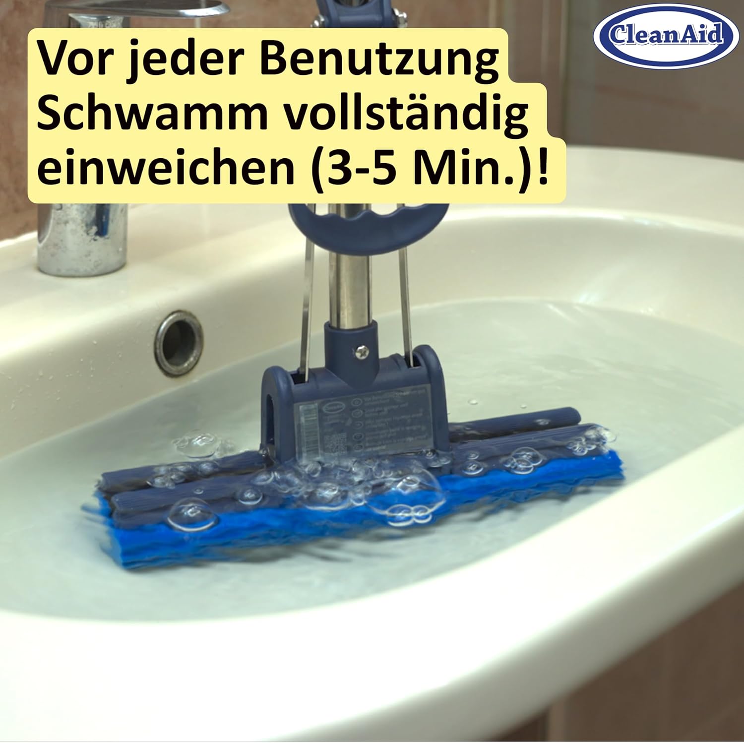 - ā APPLICATION TIP - Soak the cleaning sponge in warm water for about 2 to 5 minutes until it becomes soft. After that, the floor mop is ready for immediate use. No bucket is required. We recommend always wringing out and rinsing the sponge under fresh water. This way, you won't spread dirty mop water on the floor. Note: Do not clean the sponge with chlorine.