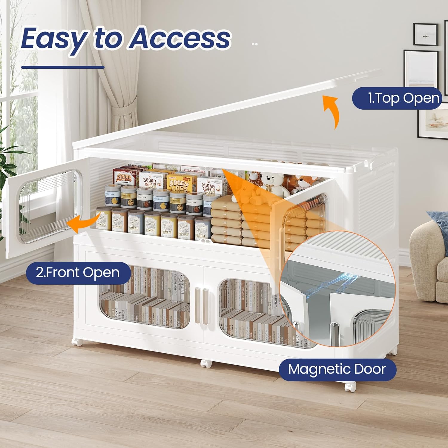 • 【Two Ways to Open & Magnetic Easy Access】The collapsible storage bins with doors and wheels feature a dual access way, allowing for both top and front door openings, and with clear brown windows for easy visibility. The extra large storage bins with open front doors are equipped with magnetic lock buckles to prevent dust from entering the cabinet.
